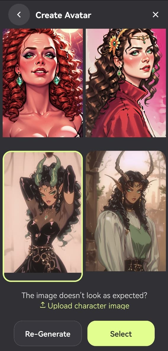 The initial page helps you to generate images for your character.